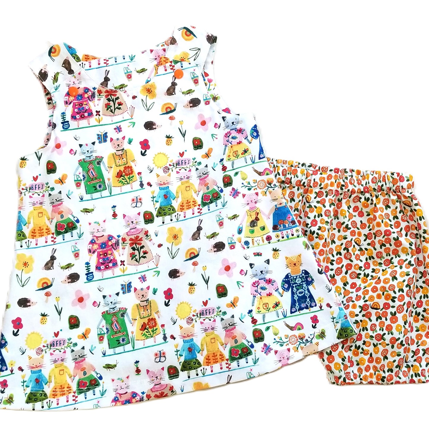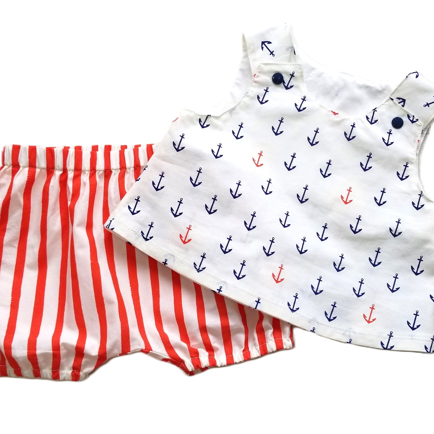 Sweet little bloomers to coordinate with the Goodnight moon tops and dresses. They make such a great combination. Some pictures in other fabrics are included to illustrate the look including a top and striped bloomers and a dress and some floral bloomers.