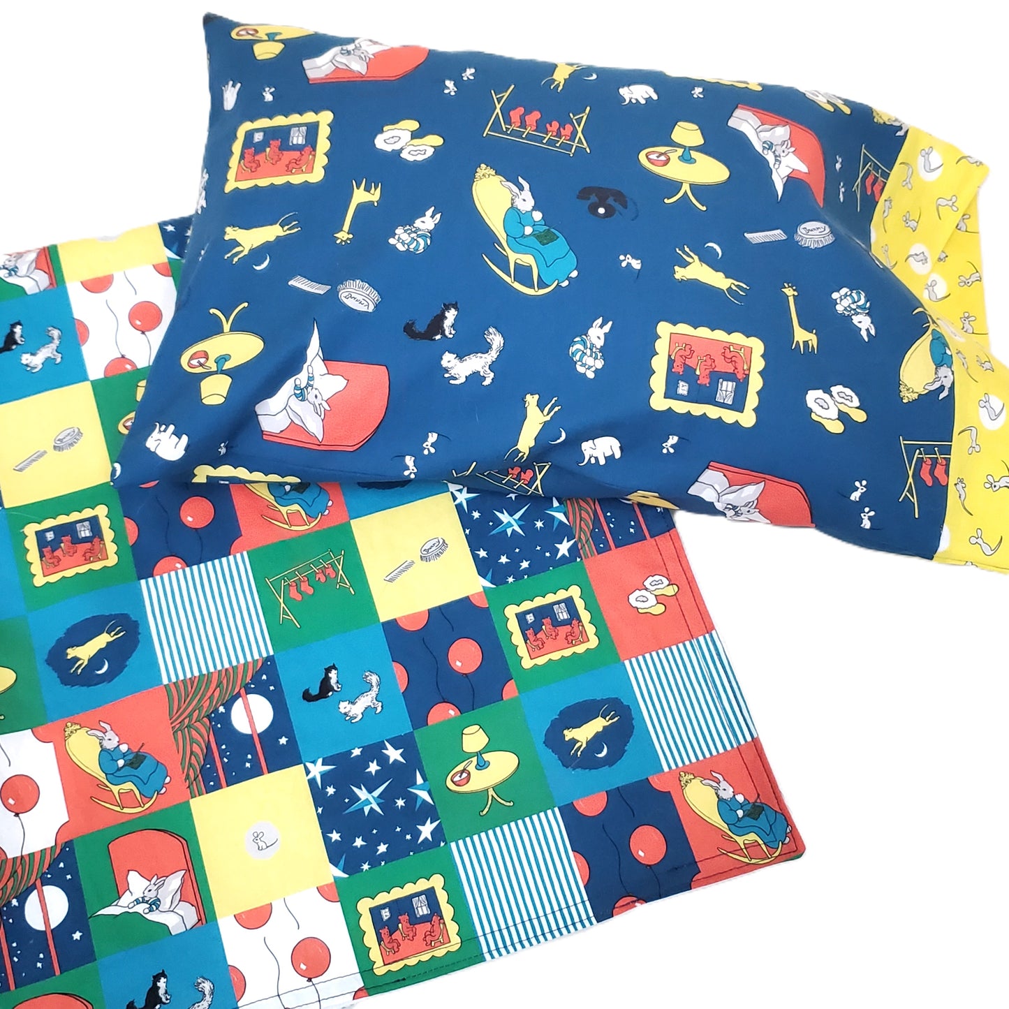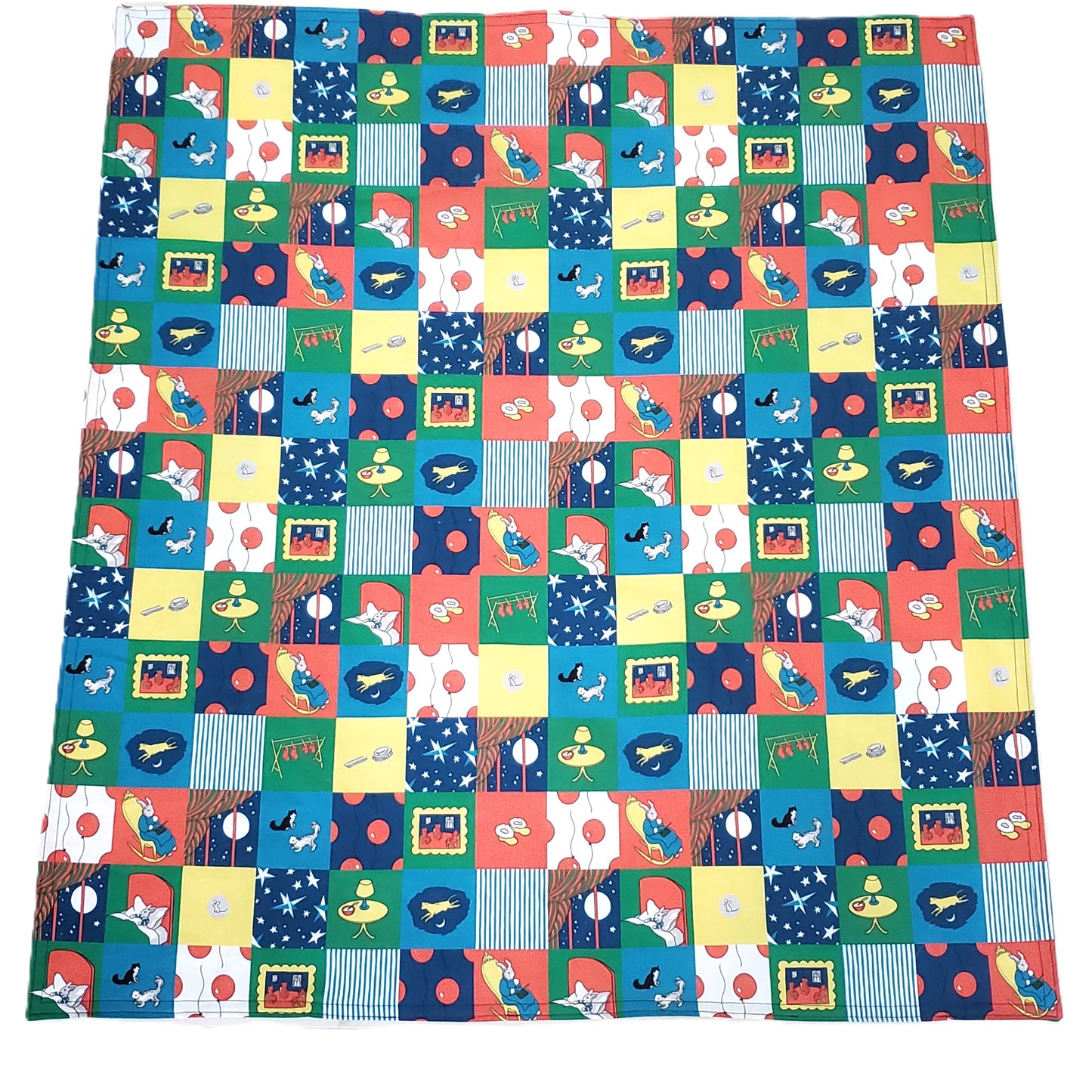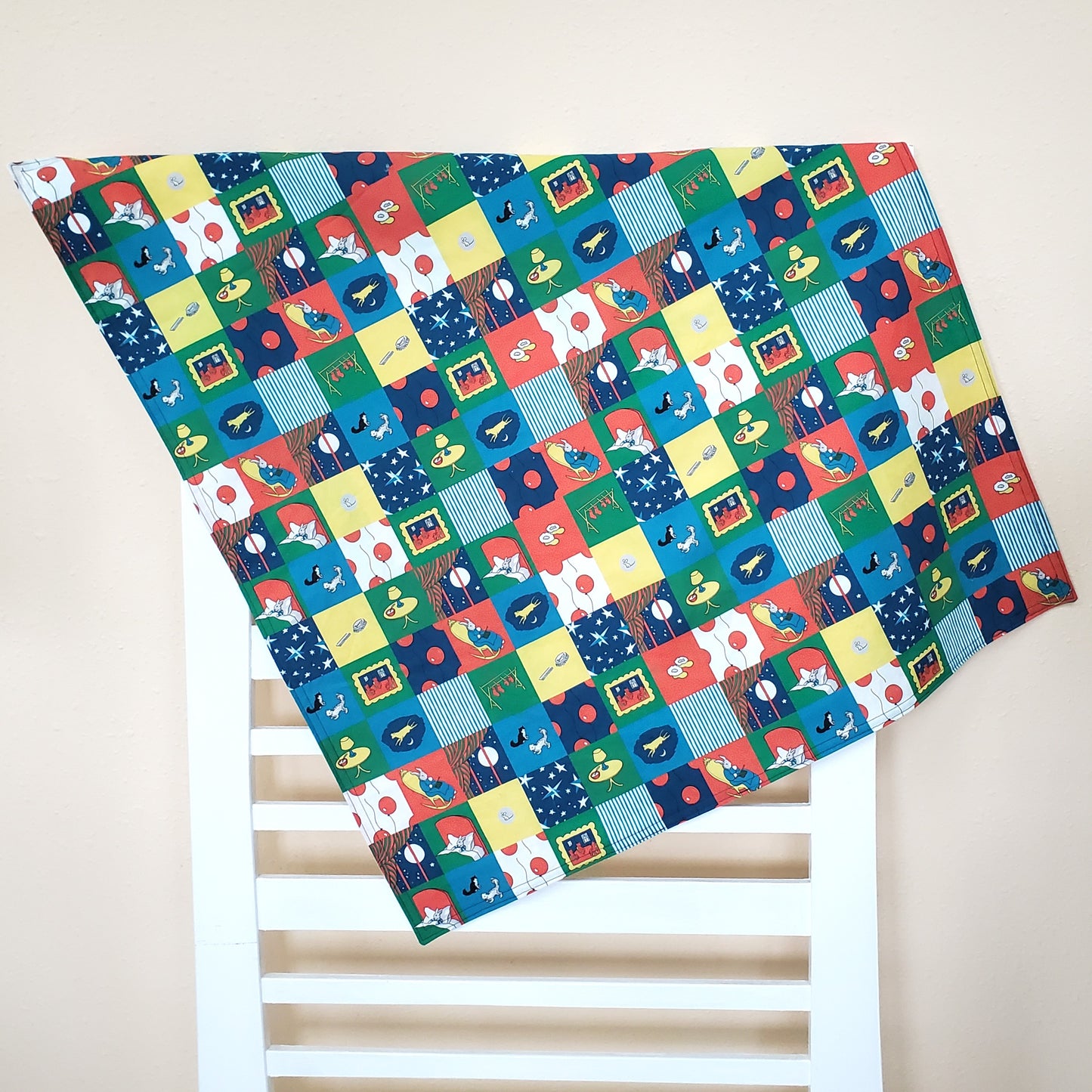 Our smaller blankets measure approximately 32" x 36" and are just the right size to use as a receiving blanket, for swaddling, the stroller, or cuddling! Doesn't it make you want just want to cuddle up and read? For your toddler we have a larger size which is 40" 58".