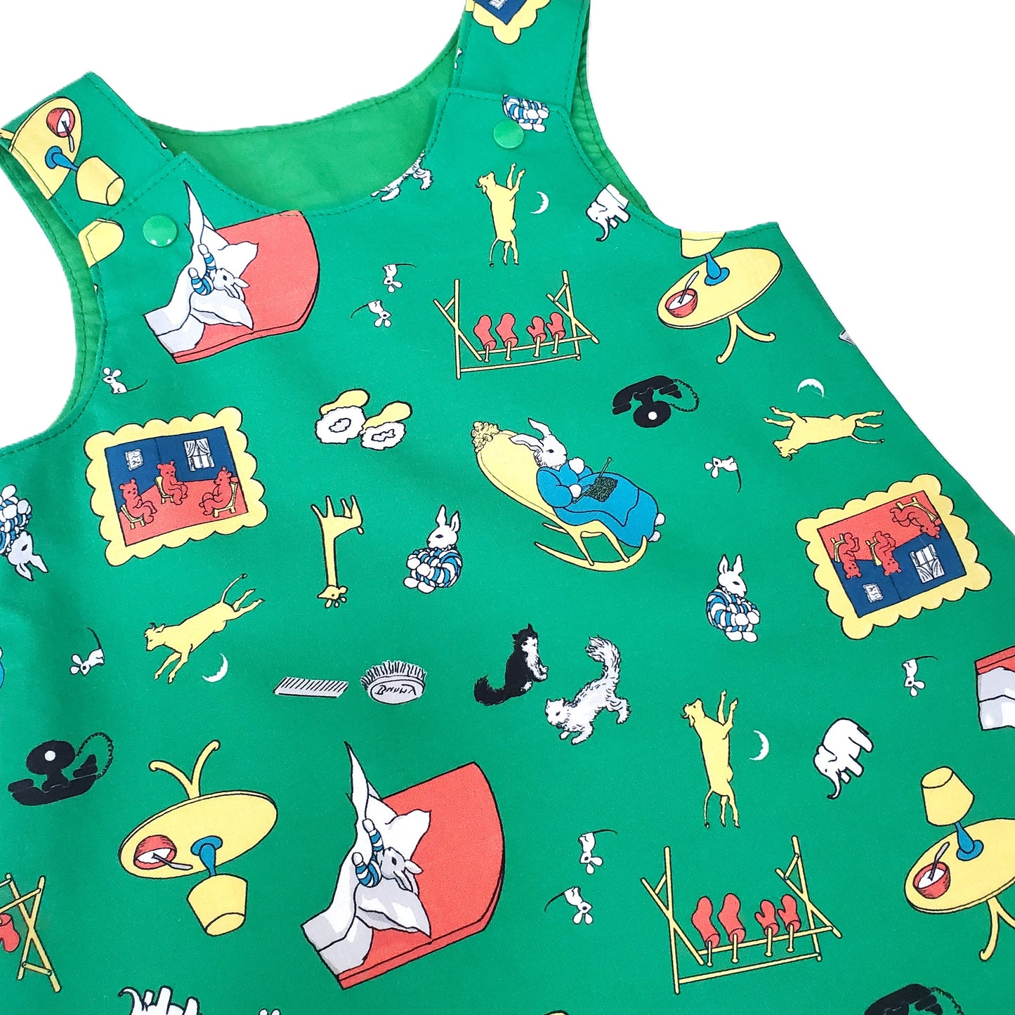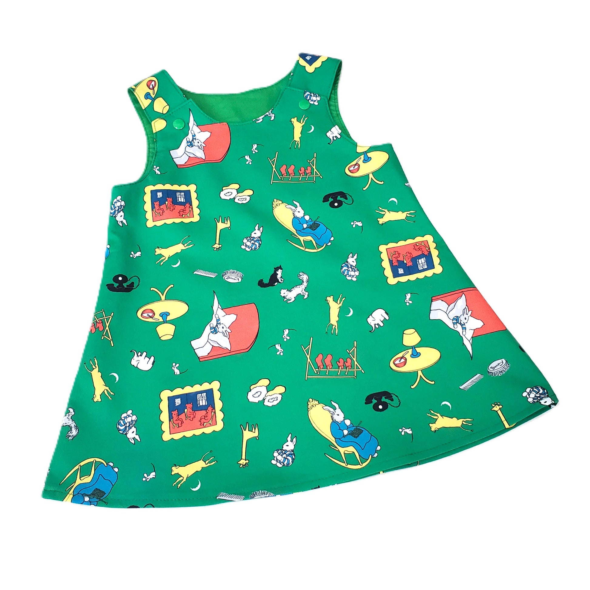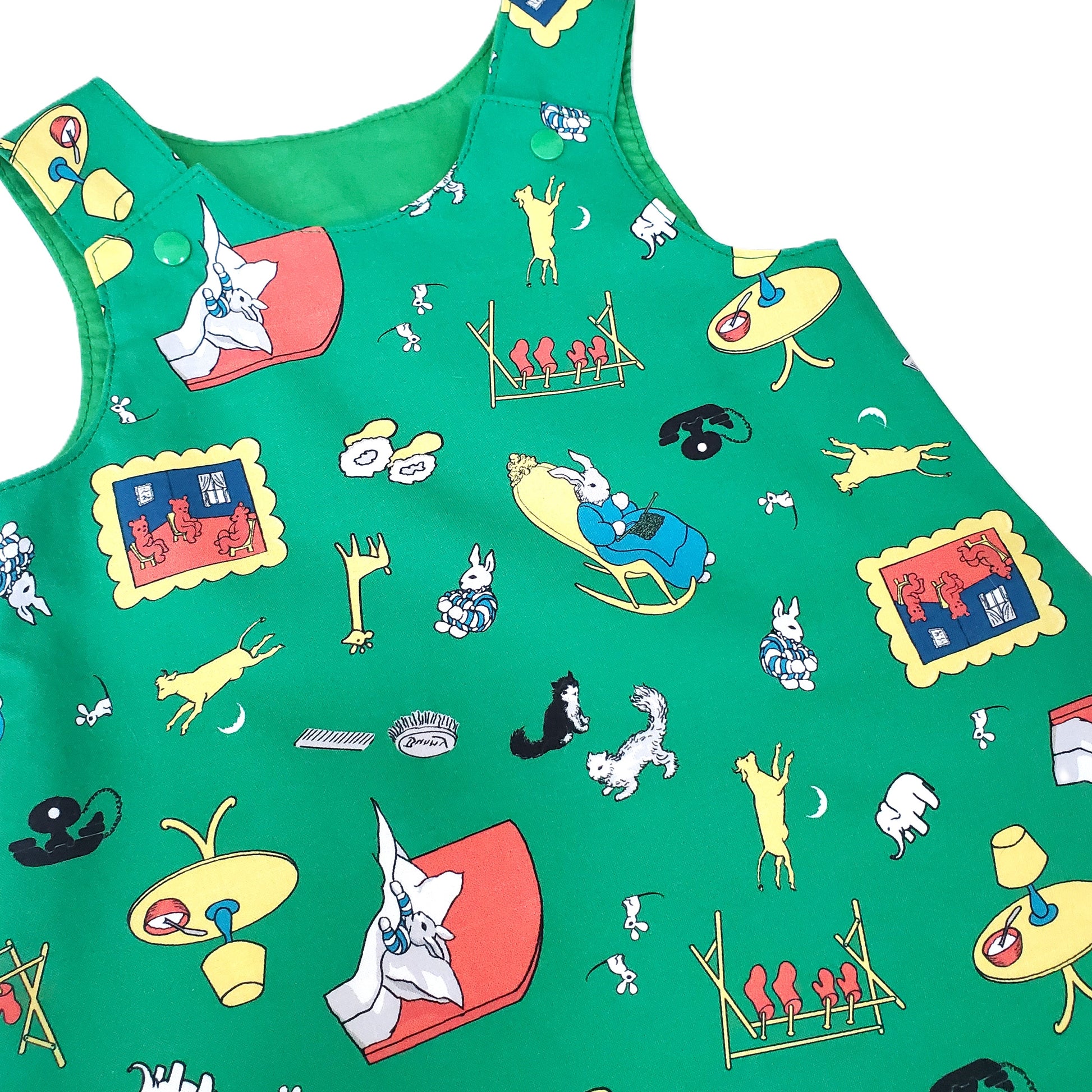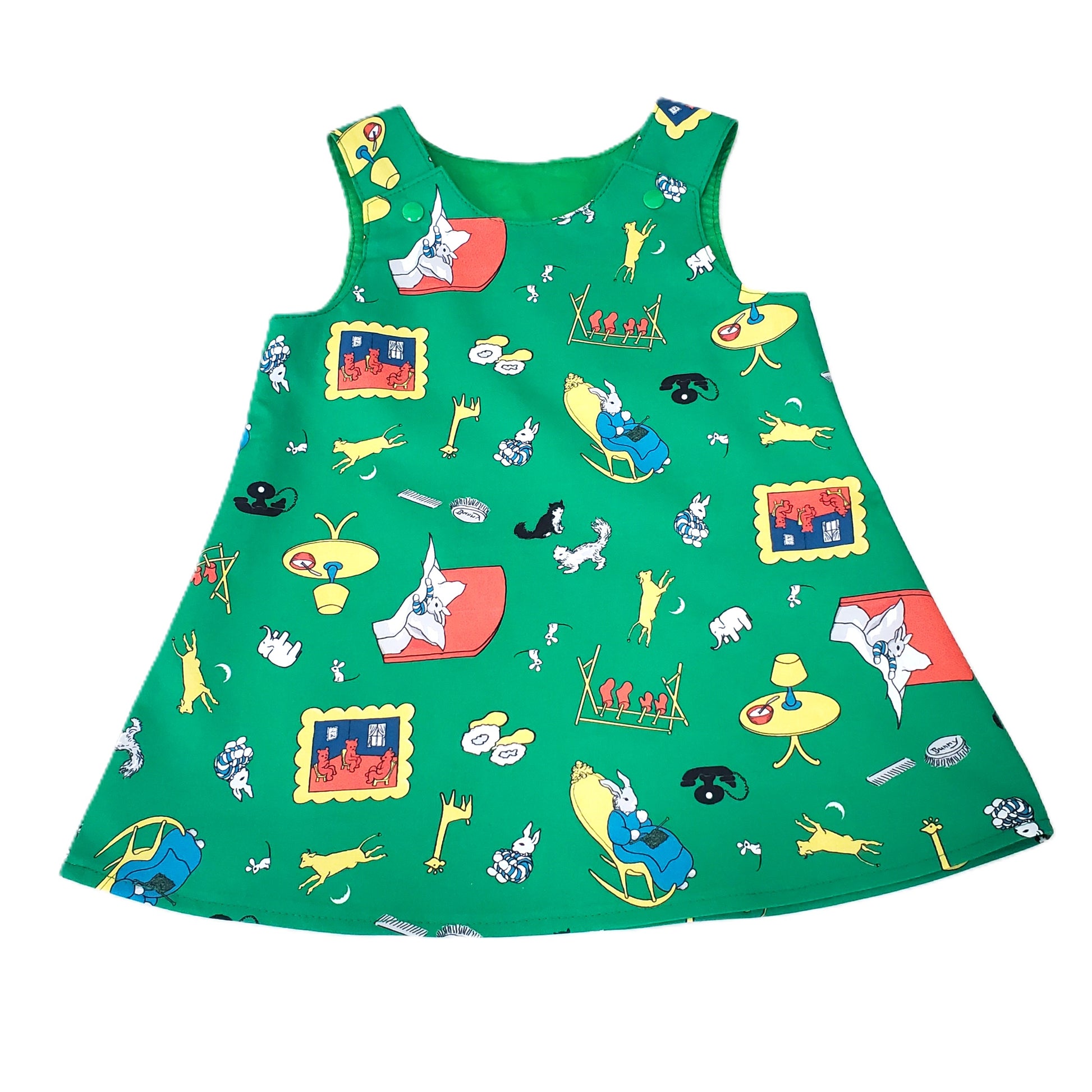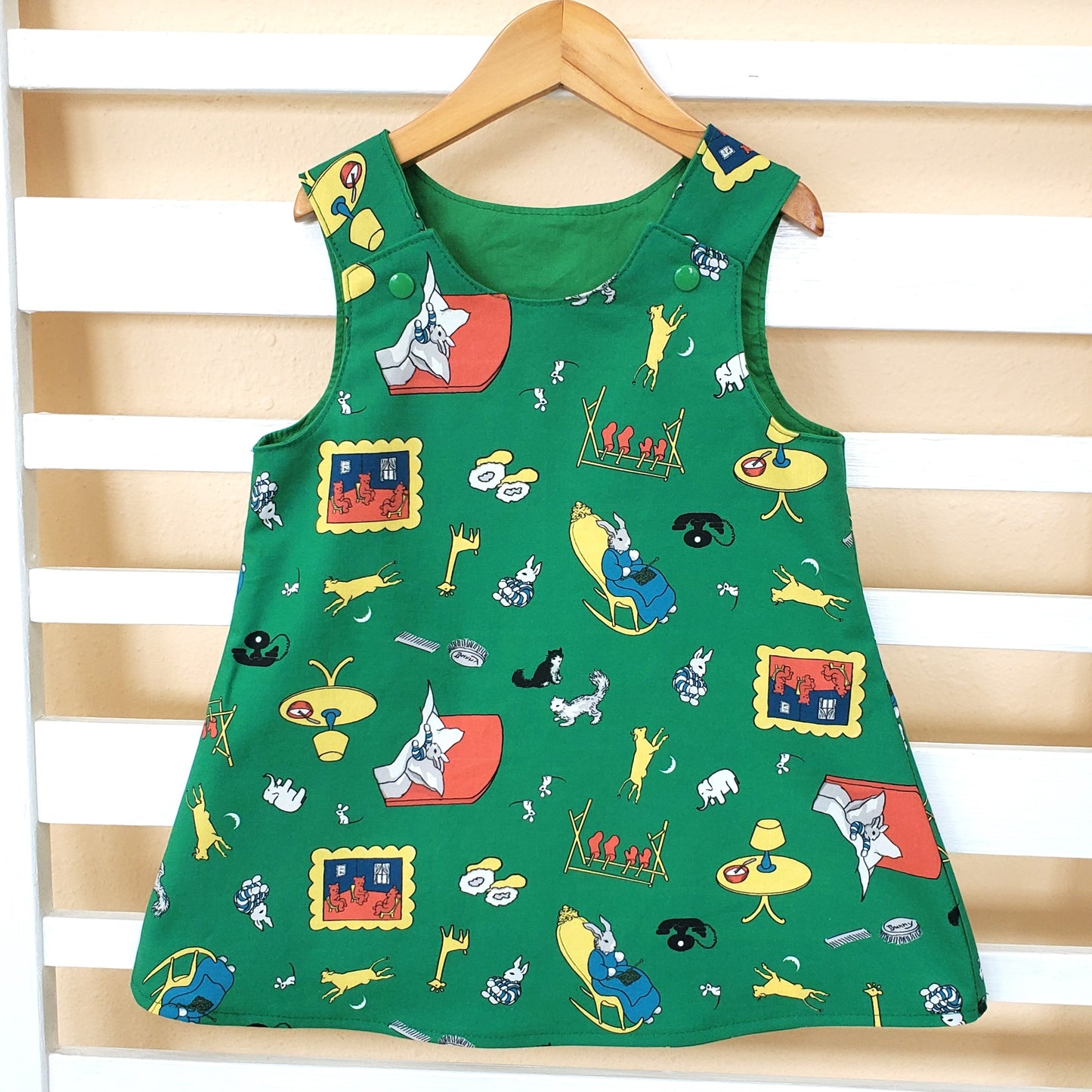 Adorable little a-line dress in your choice of several prints featuring illustrations from the beloved book "Goodnight Moon". This dress is perfect for warm weather days, or add a tee, leggings, shorts, or bloomers underneath! Click on fabric names in the menu to see individual prints.