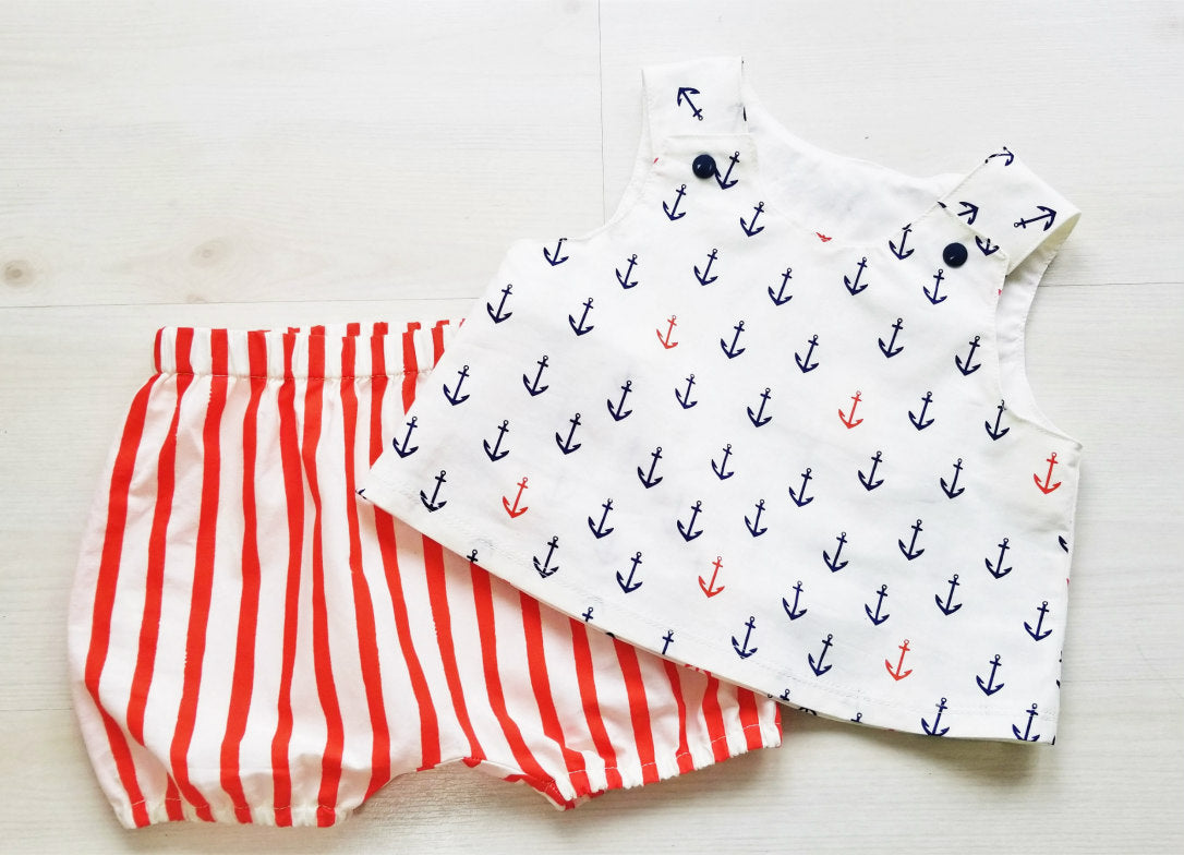 The dress is 100% GOTS certified organic cotton poplin. Add a top, leggings, shorts, or bloomers underneath for a complete set. You can also get it in a top length, a top and bloomer are pictured in other fabrics.