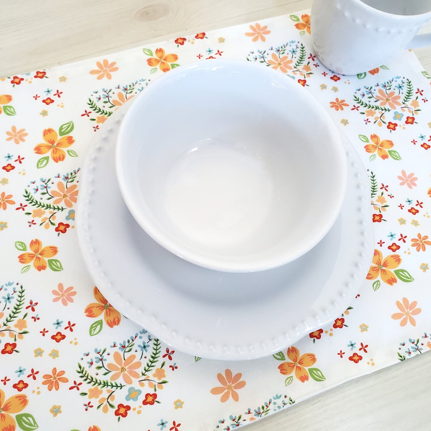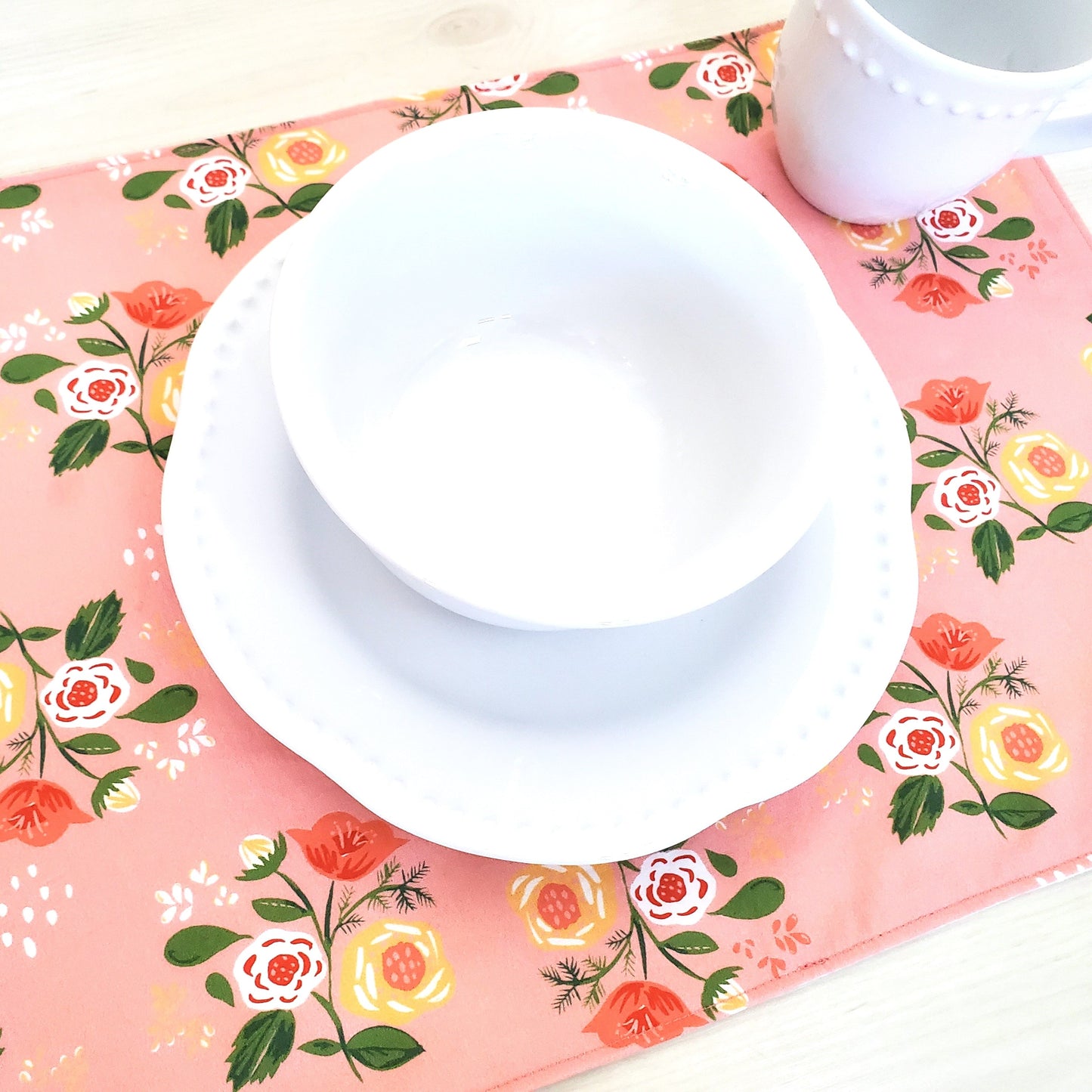 Hearts and Flowers Placemats in Organic Cotton