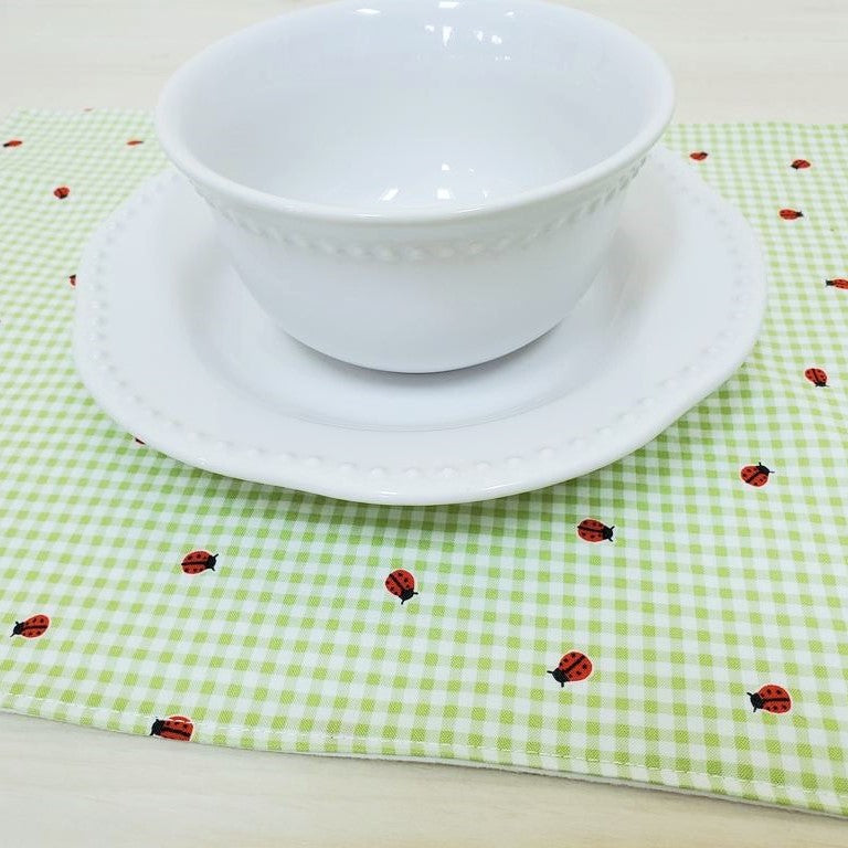 Sweet little ladybugs on a green gingham plaid background make the cutest placemats. They will add some fun to your table setting and are great for picnics when the weather cooperates!