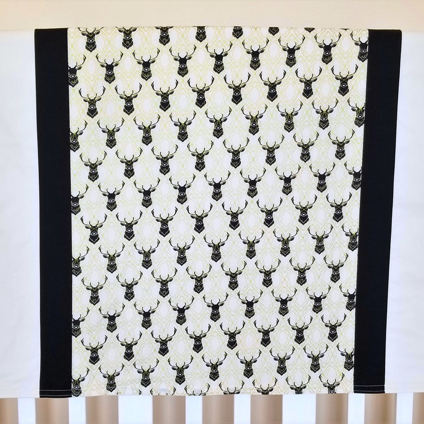 Organic Cotton Baby Blanket in Black, White and Gold, Blossom or Elk Print