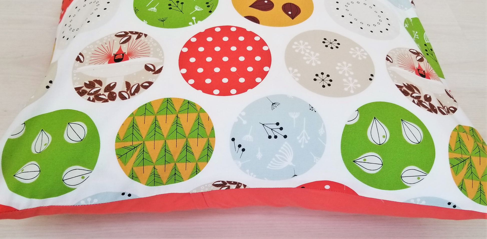 Our pillow covers fit an 18" x 18" pillow insert. They feature an envelope enclosure on the back. The back is a coordinating off-white.