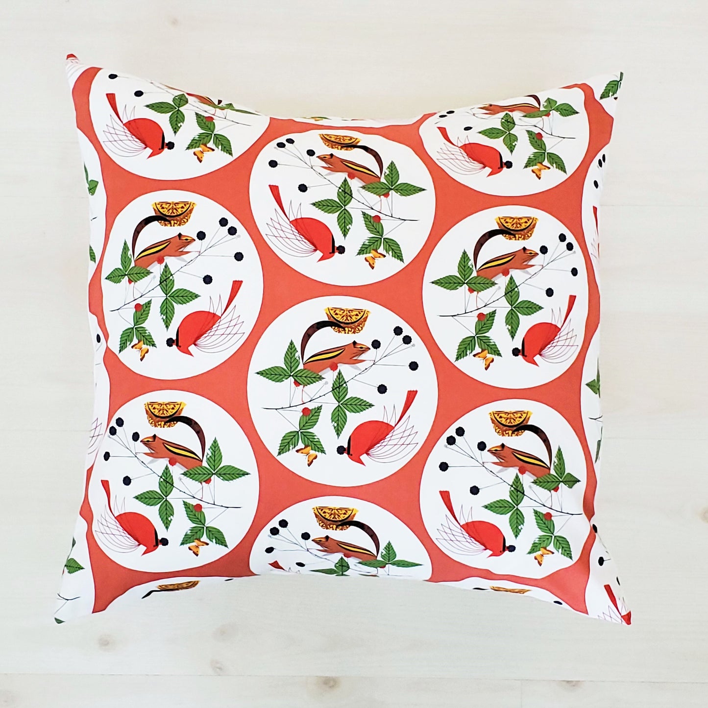 Dress up your home for the winter or the holidays with this fabulous organic cotton fabric based on illustrations by Charley Harper. This timeless throw pillow cover will add cheer to your decor, year after year. All fabrics are 100% GOTS certified organic cotton.